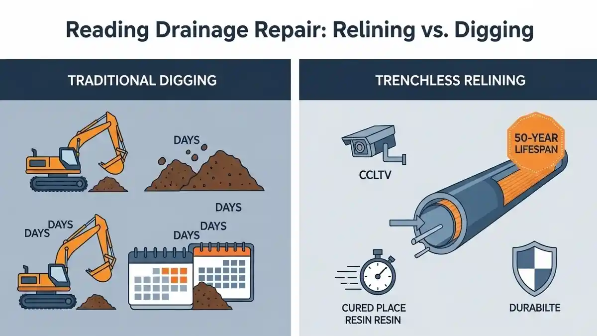 Avoid costly, messy excavations. Compare Liphook Drain Relining vs Digging to save your home, time, and money with our expert, minimally invasive, and durable no-dig repair solutions for local drains.